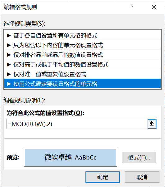 选中中间的数据行,点击菜单【开始】---【条件格式】---【新建规则】,弹出【编辑格式规则】对话框如下: