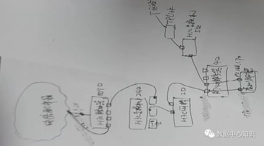 下面就开始了解现场网络情况了,顺便帮忙配置防火墙,用户还是期望内外网访问互通的。没有专业运维人员,只能自己摸排,经过不下半小时的检查之后,终于搞清楚了大致线路。现场设备连接图