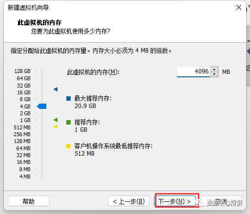 内存结合自己的主物理机的实际大小和需求分配,我的笔记本是24G的,所以给我这边分配了4G的内存。