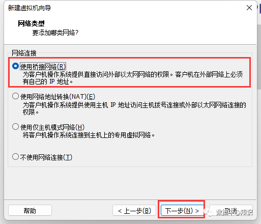 网络连接类型一共有桥接、NAT、仅主机和不联网四种。