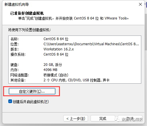 14. 点击完成,就开始安装我们需要的Centos8.3的虚拟机了。