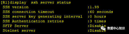 [R1]display ssh server status \\查看ssh 的状态,默认是关闭的,需要改为enable