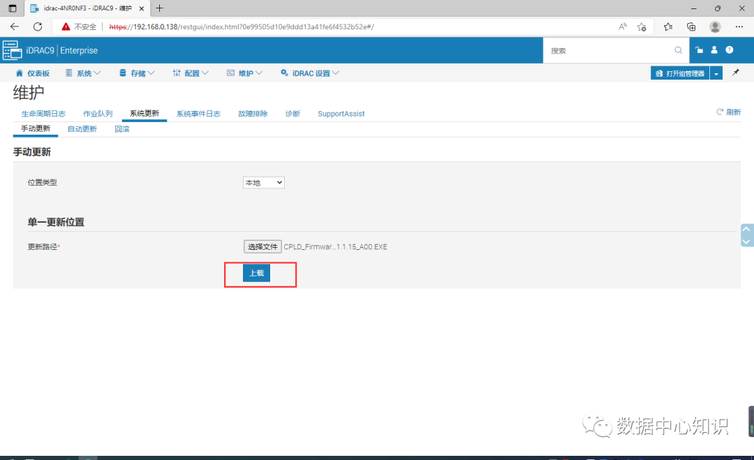 选择需要更新的固件。固件可以根据服务器型号从戴尔官网下载。https://www.dell.com/support/home/zh-cn/?app=drivers