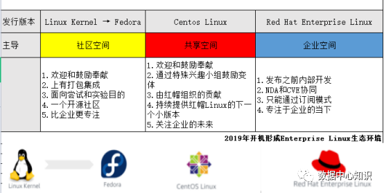CentOS处于红帽生态链的上游,即Fedora → CentOS → RHEL 。