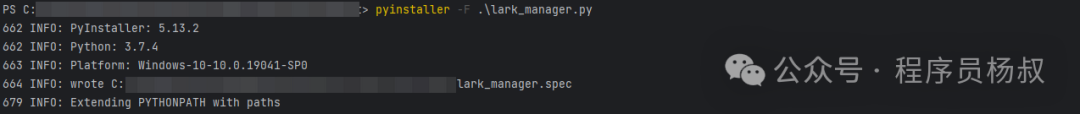 假设项目的主运行文件叫:lark_manager.py,PyCharm终端执行打包命令: