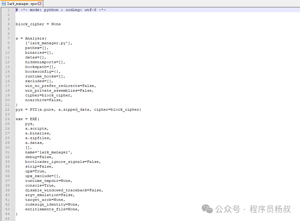 name='lark_manager' + a.version: 最终可执行文件的名字将会是 lark_manager v1.0。
