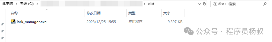 目录下新生成了一个dist文件夹,里面存储了打包后的EXE文件: