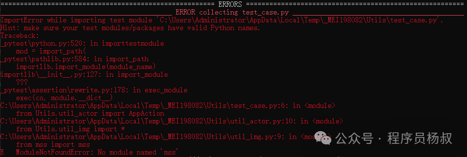 最后,你需要根据你打包后的EXE文件运行时的报错信息,根据报错信息添加对应添加缺失的内容到spec文件中,以保障最终的EXE文件运行正常。比如打包出来的EXE文件运行报错: