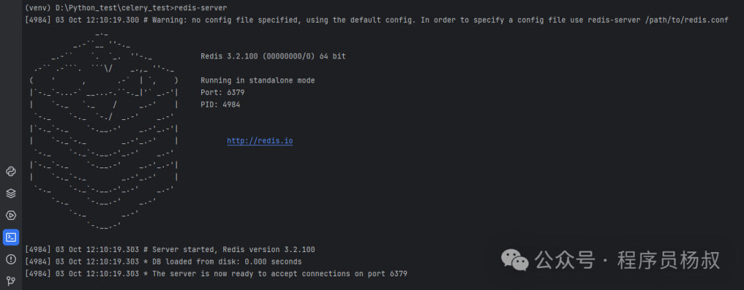 Pycharm的Terminal终端下,输入下面的命令启动Redis: