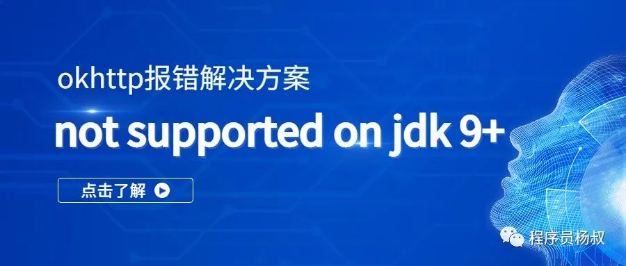 大家好,我是杨叔。每周进步一点点,关注我的微信公众号【程序员杨叔】,获取更多测试开发技术知识!本次分享的内容是:okhttp报错clientBuilder.sslSocketFactory(SSLSocketFactory) not supported on jdk 9+!
