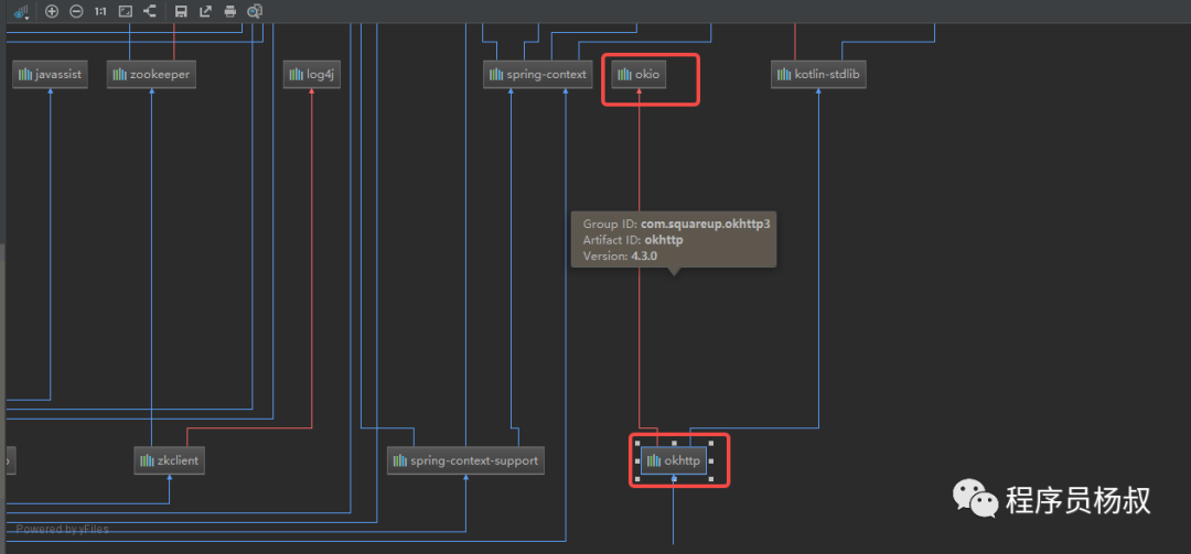 可以看到okhttp与okio关联,网上查了一下原因,是底层依赖 okhttp 与okio的版本不兼容导致,okhttp是 v4.3.0,而okio的版本还是比较低的版本v1.14.0,因此会出现上述问题: