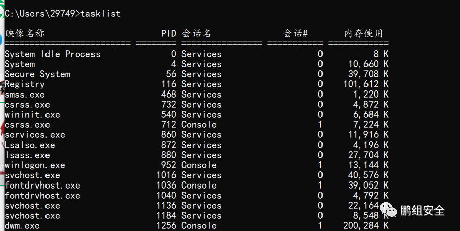 1、命令: tasklist