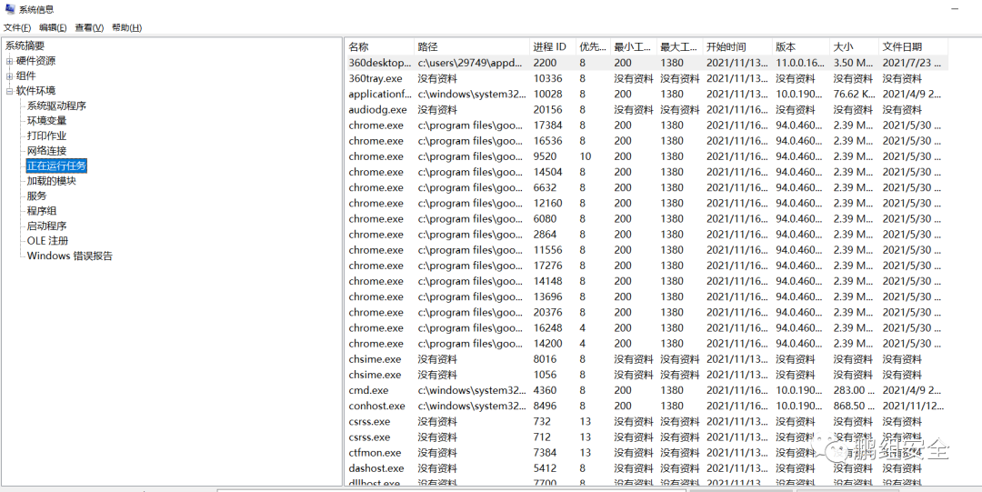 cmd中输入msinfo32弹出系统信息,里面也有进程详细信息