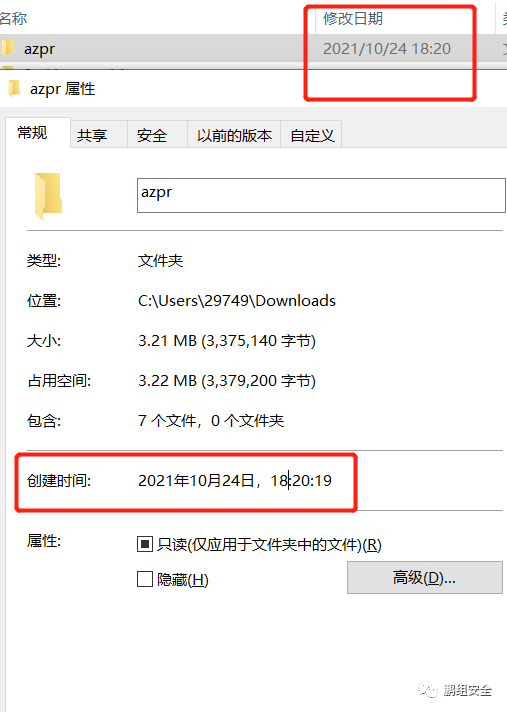 属性里-->常规处有创建文件日期,与修改日期进行对比,如下图所示