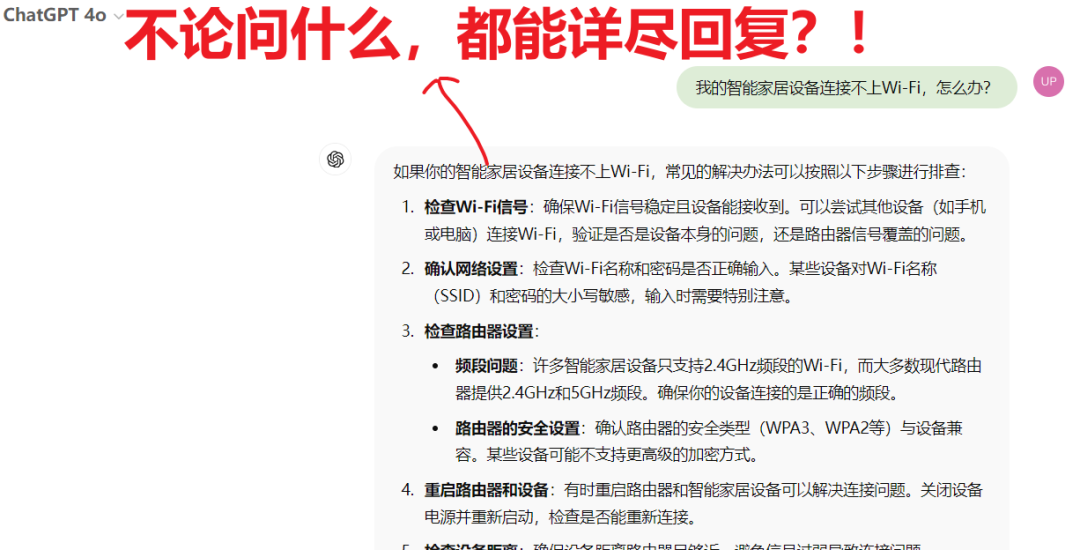 当我们提出问题时,例如:“我的智能家居设备连接不上Wi-Fi,怎么办?”
