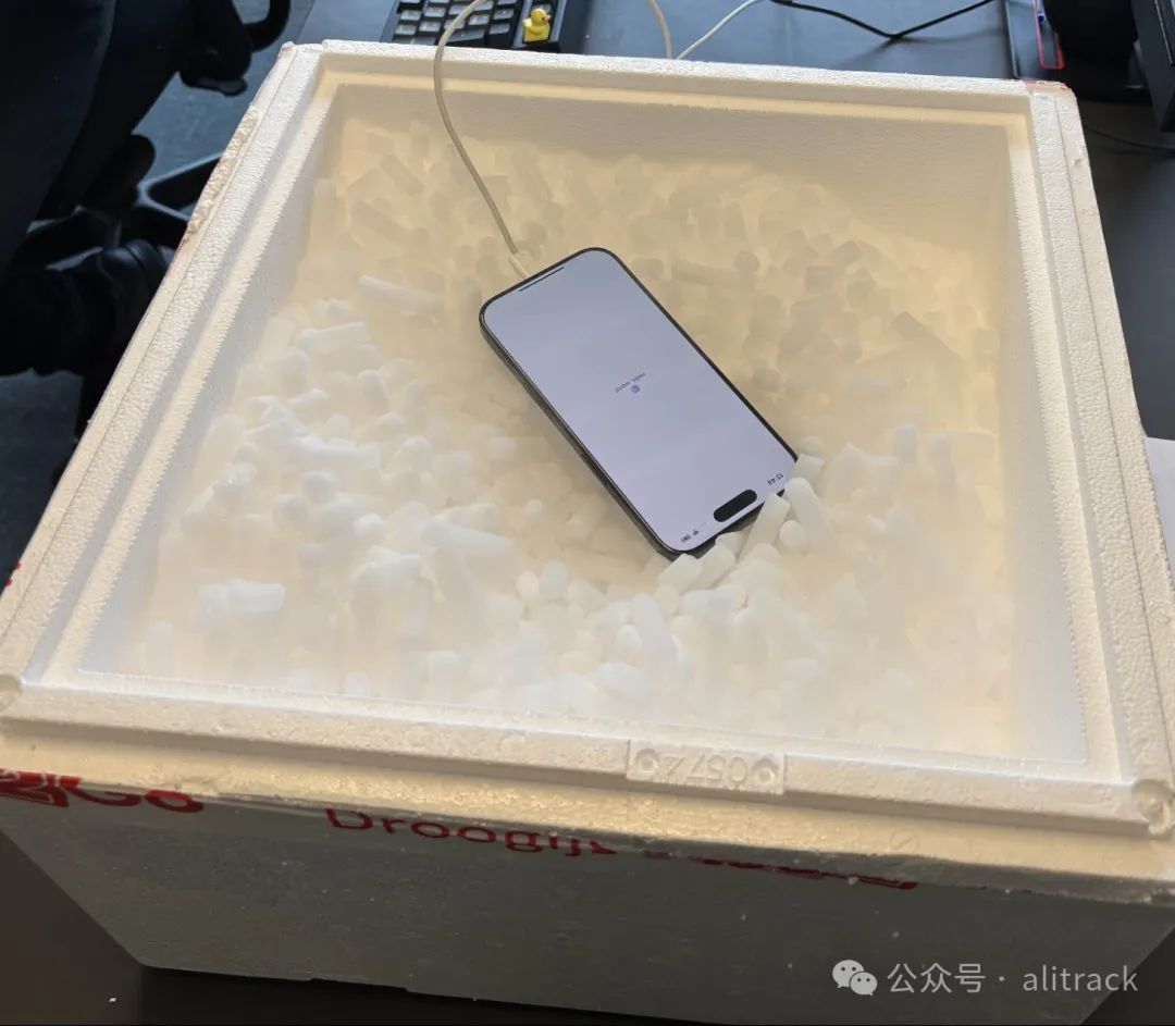 这促使我们思考:如果改善手机散热效果呢?于是,我们用干冰(温度低于-50℃)对手机进行冷却。