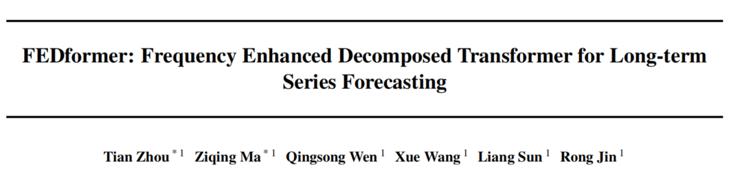 本周推荐的是ICML 2022上的论文:ICML - 2022 - FEDformer Frequency Enhanced Decomposed Transformer for Long-term Series Forecastin,该文提出了一种频率增强分解Transformer(FEDformer)方法,结合了Transformer和季节-趋势分解方法,用于改进长期时间序列预测性能,并在六个基准数据集上取得了显著效果。作者来自电子科技大学,电子科技大学,电子科技大学和电子科技大学。