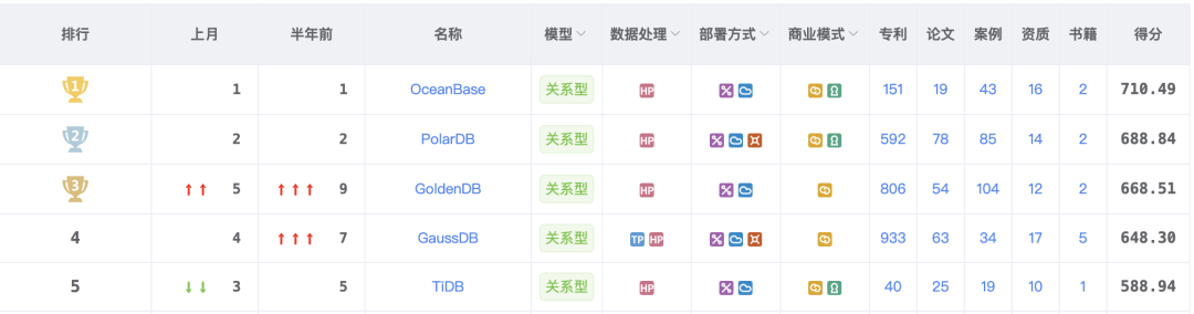 GoldenDB排名再升夺探花,老牌产品风采依旧地位坚固
