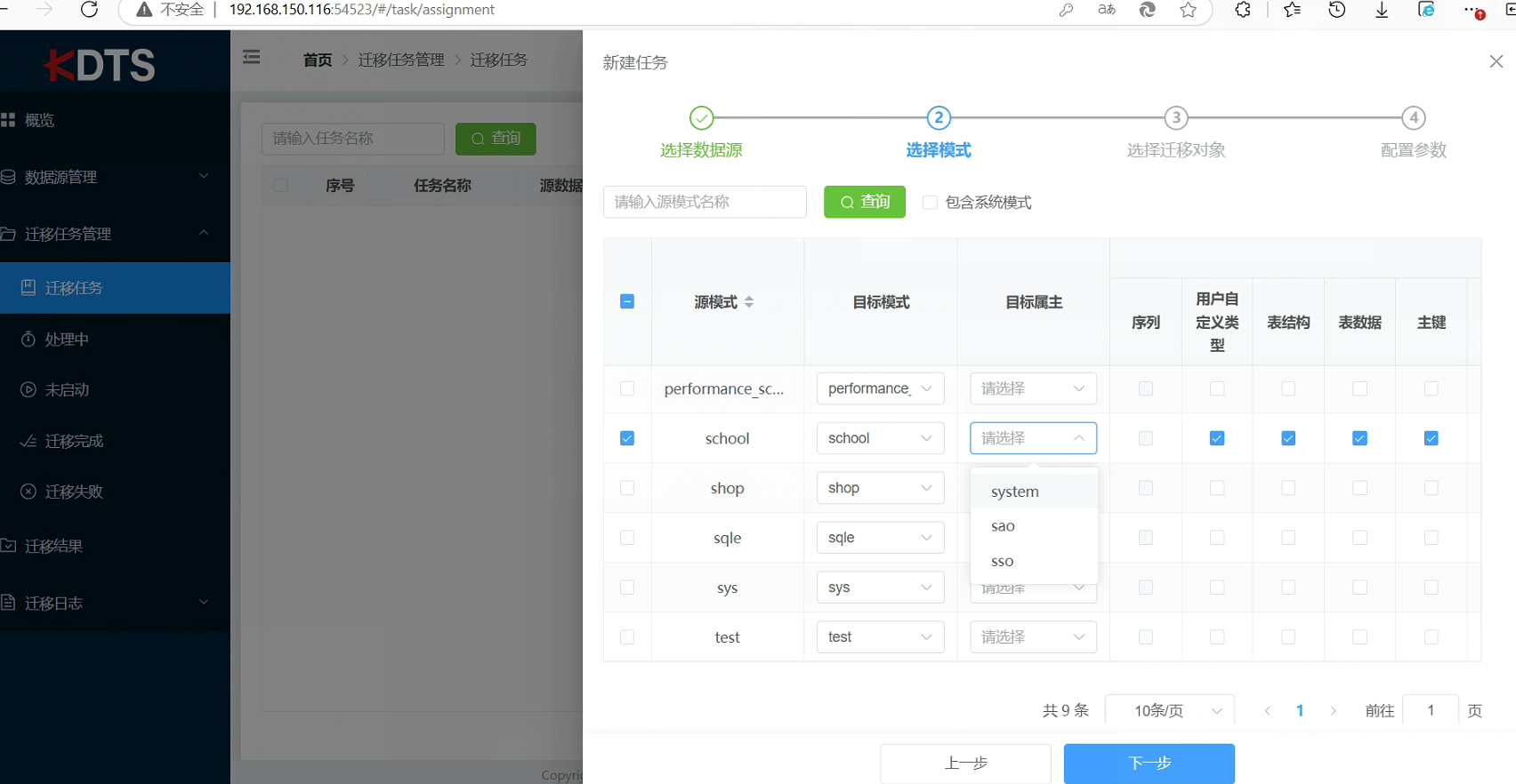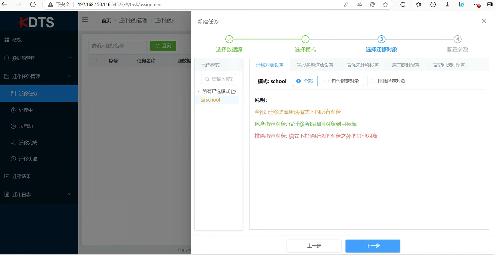 选中要迁移的数据库,可以选择迁移范围,还可以字段类型过滤等,结合自己情况可以按需配置