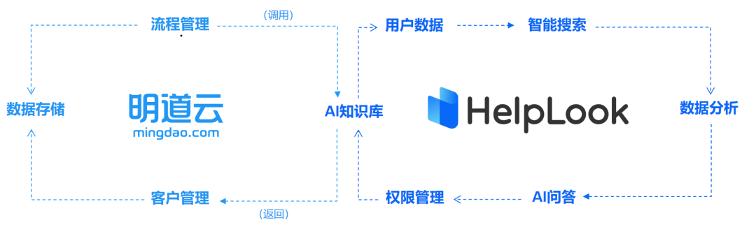 为此,HelpLook与明道云开展了深度产品生态合作,通过融合HelpLook的AI知识库+AI问答数据分析能力,与明道云HAP的零代码应用搭建能力 ,为B2B企业打造了一套集业务管理与知识管理于一体的闭环解决方案。