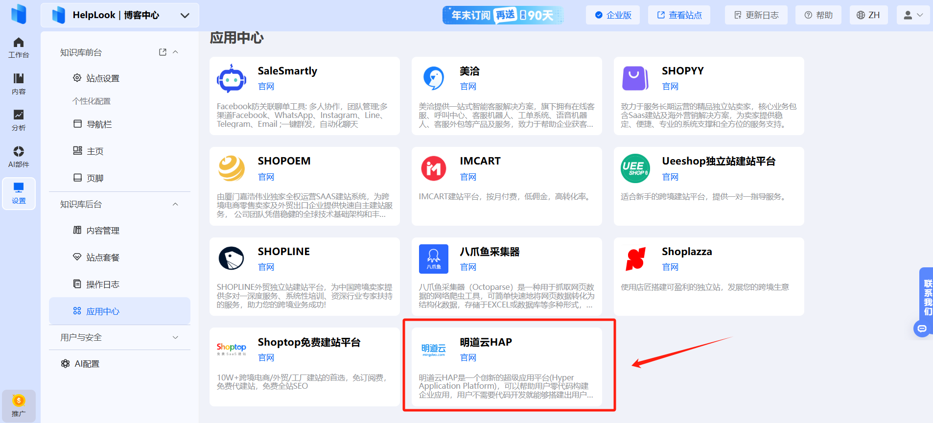 同时,明道云HAP已入驻HelpLook客户端—“应用中心”。