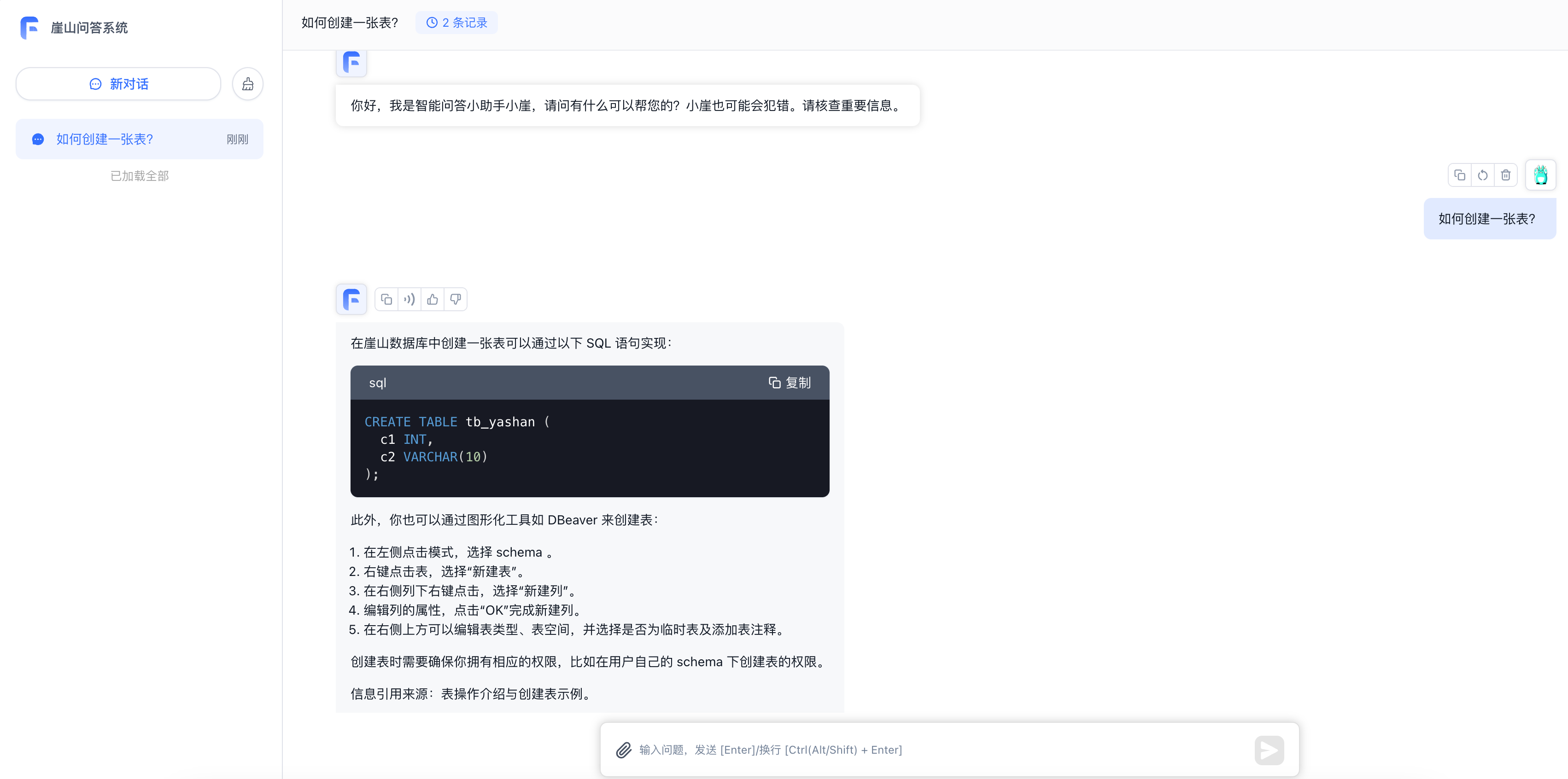 比如我问一个简单的建表问题: