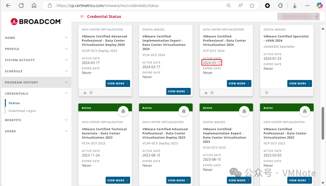 https://cp.certmetrics.com/vmware/en/credentials/status