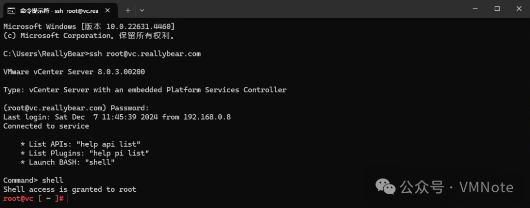 第2步,执行如下命令修改vCenter Server root账户的Shell类型,从Appliance Shell改为普通的Bash Shell