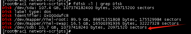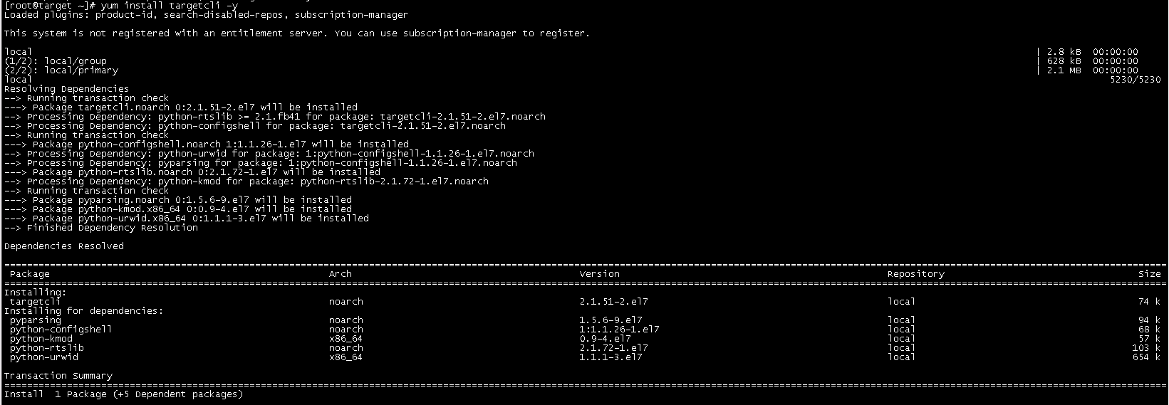 本文使用一台centos7机器作为iSCSI目标端,分配一个10G磁盘用作iSCSI存储设备,盘符为/dev/sdb。