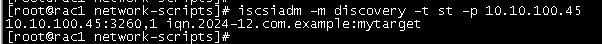 在发起端,首先使用以下命令发现目标端上的iSCSI目标: