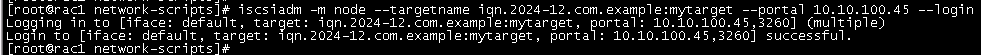 iscsiadm -m node --targetname iqn.2024-12.com.example:mytarget --portal <目标端IP地址> --login