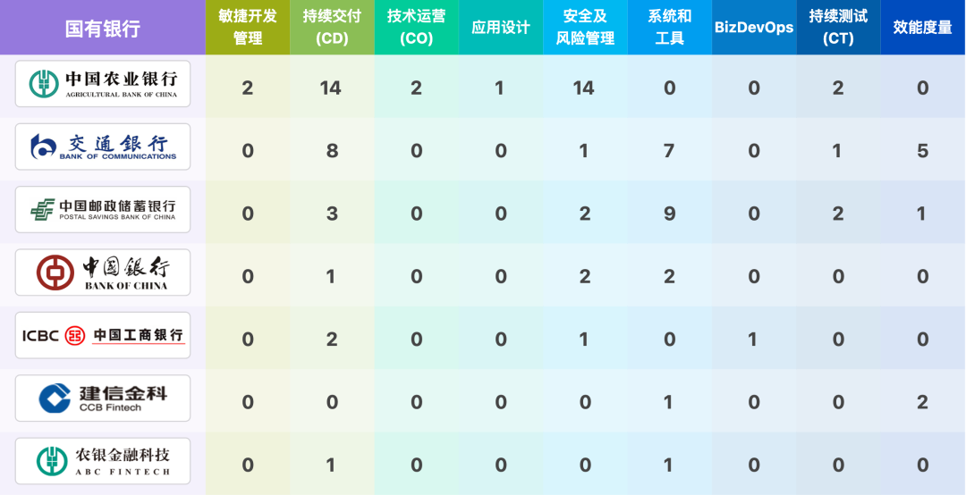 国有银行通过 DevOps 国内标准(《研发运营一体化( DevOps )能力成熟度模型》)评估数量如下: