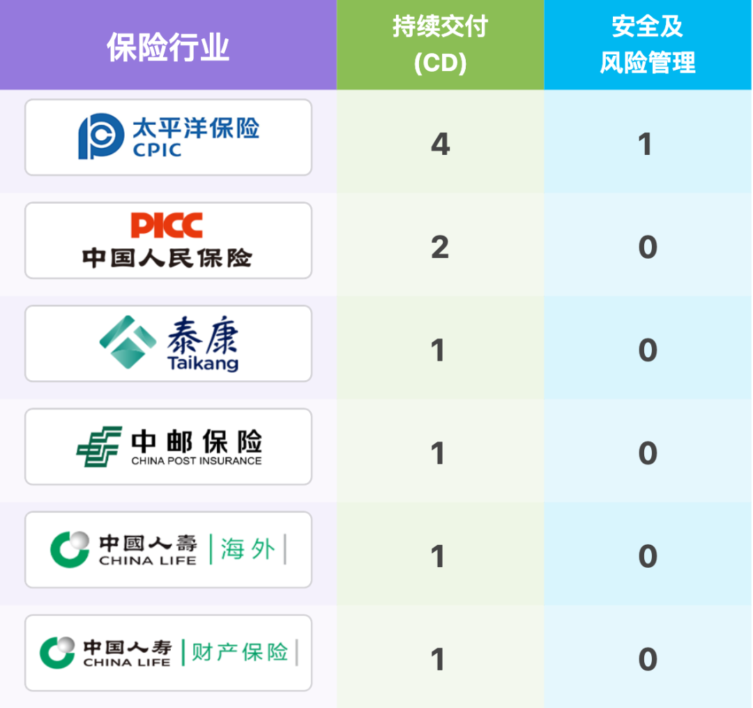 保险行业通过 DevOps 国内标准(《研发运营一体化( DevOps )能力成熟度模型》)评估数量如下: