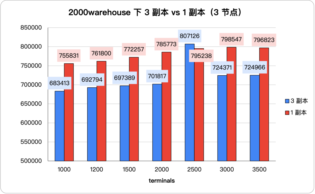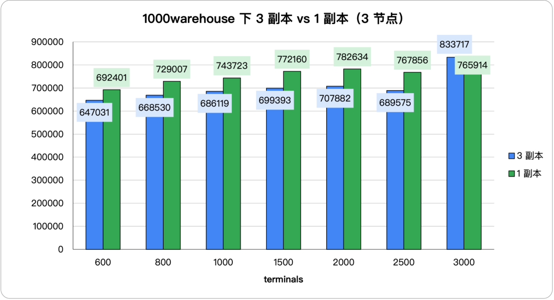 个别场景下 3 副本集群的性能甚至与 1 副本集群持平(或者略高)。
