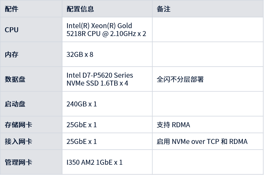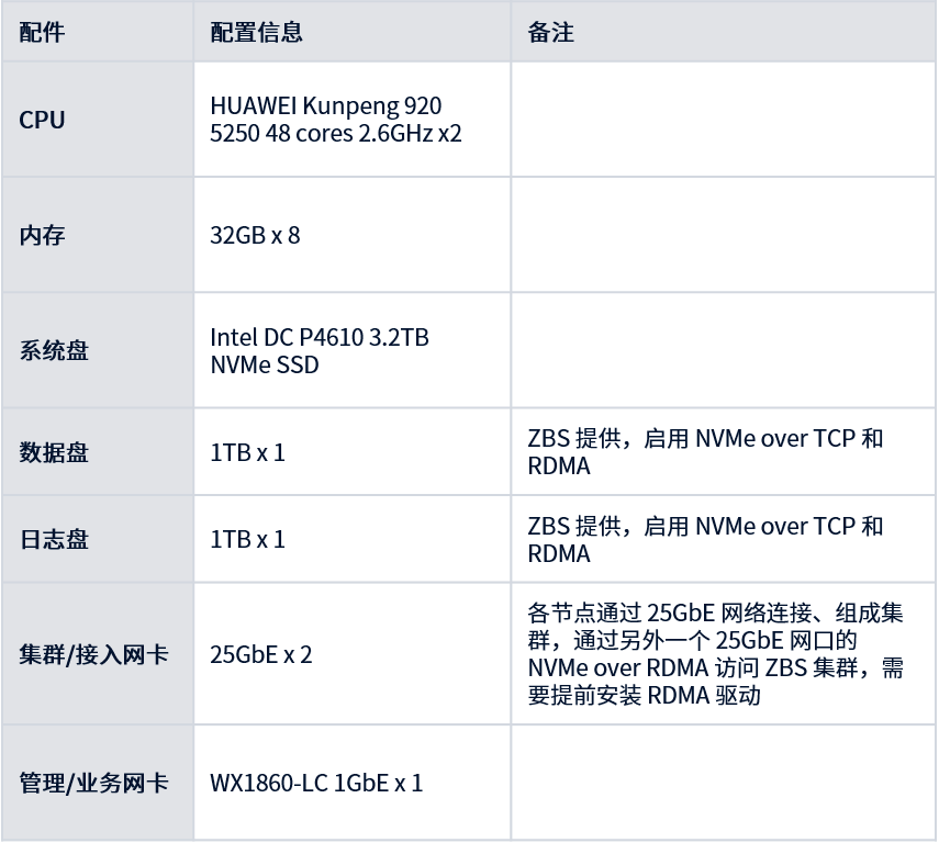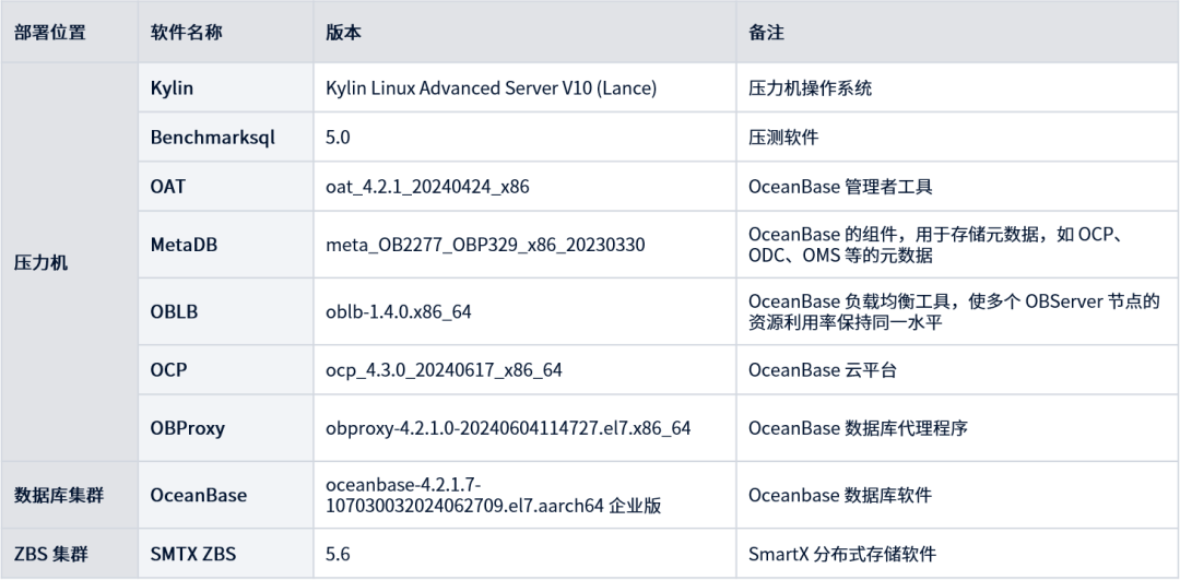 基于以上背景,我们将通过一系列的测试验证 SmartX 自研分布式存储 SMTX ZBS 作为 OceanBase 的外部存储设施的可行性。其中,测试中涉及的软、硬件的详细信息可通过文末附录进行查看。
