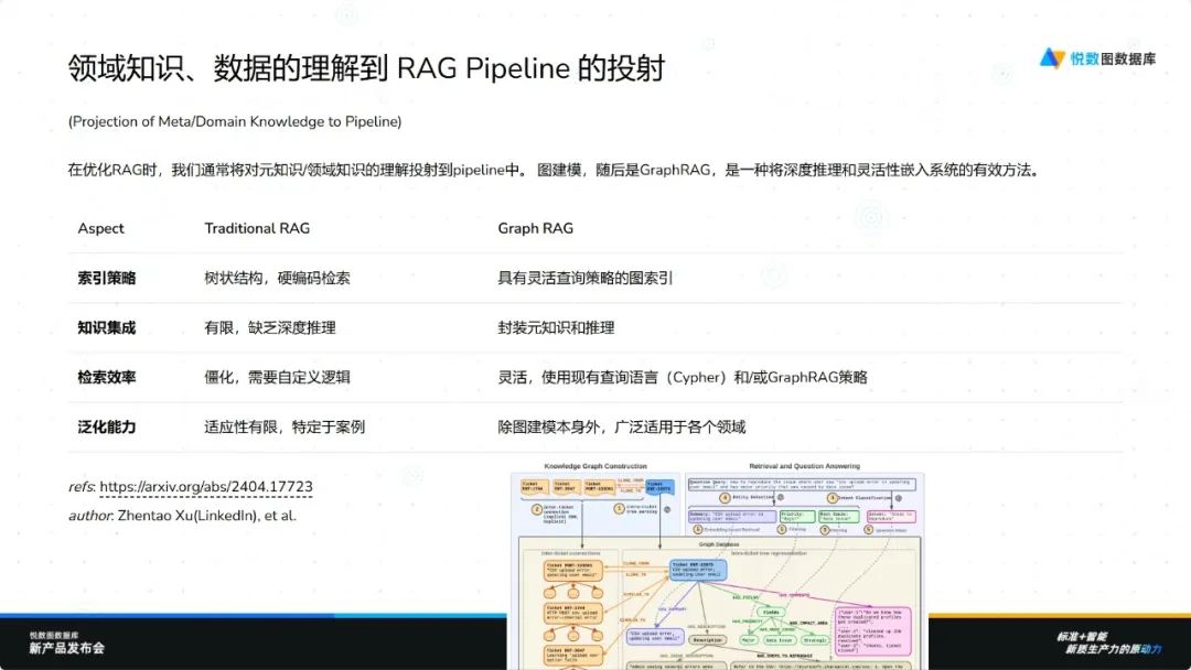 我非常荣幸能在此时与大家分享我们在 AI 与图结合方面的一些进展。我是杭州悦数 GenAI 的负责人古思为。自去年年中以来,我们团队便开始了大量关于图与生成式 AI 结合的探索。在 Graph RAG 领域,我们最初进行了一些有趣的尝试,并在业界进行了早期的发布,成功摘取了一些“低垂的果实”。随着越来越多的人关注这一领域,行业内的创新如雨后春笋般涌现,带来了许多新的进展。同时,我们也在这一过程中不断积累经验,开展了许多有趣且有价值的工作。接下来,我还想与大家分享我们的一些观察与见解。