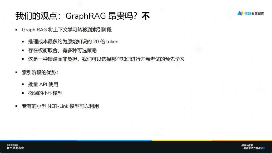 虽然 Graph RAG 技术本身涉及复杂的计算过程,但如果能合理规划并充分利用现有技术和资源,其成本是可以得到有效控制的。悦数团队正是基于这样的理念,在过去一年多的时间里不断探索和完善自己的解决方案——悦数 RAG,最终实现了成本与效果之间的良好平衡,为企业提供了更具性价比的选择。