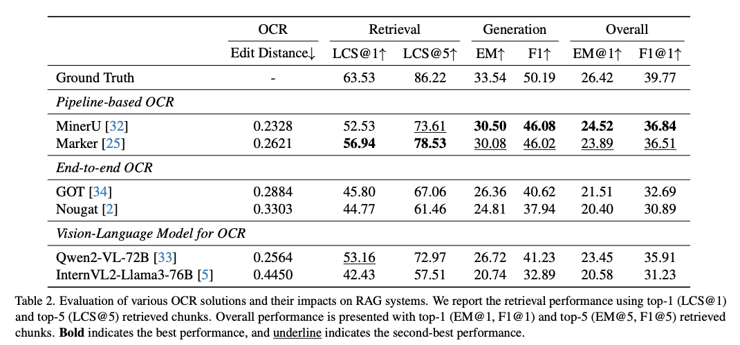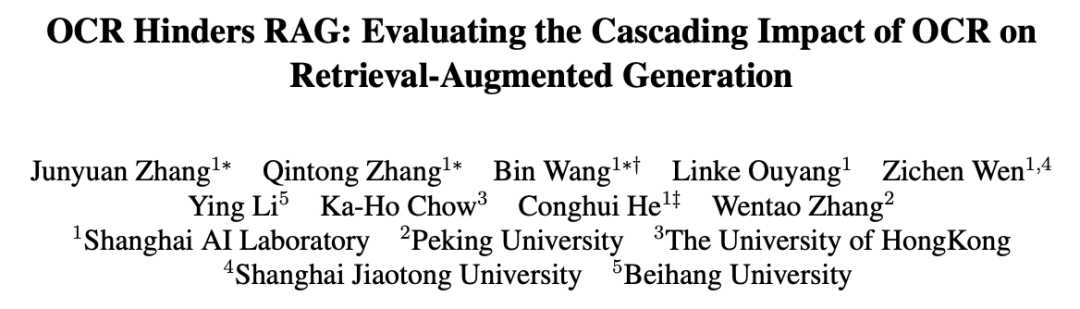 OHRBench的实验结果表明,OCR噪声对RAG系统的性能有显著影响。具体表现如下: