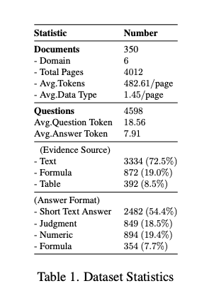 文档数量:350份PDF文档,涵盖六个领域 页面数量:4012页,包含Q&A生成的1370页,剩余为知识库部分 平均每页词汇数:482.61个 问题和答案:4598个Q&A对,问题平均包含18.56个词汇,答案平均包含7.91个词汇