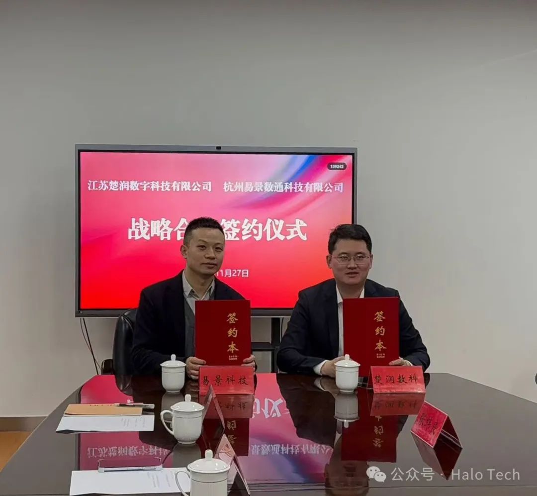 在2024年11月27日上午11:00,易景科技与宿迁市大数据集团——宿迁市楚润数据集团有限公司,在宿迁市楚润数据集团有限公司二楼207室携手举办了战略合作签约仪式。此次战略合作的成功签约,标志着双方在数据科技领域的更深度融合,也是宿迁市楚润数据集团和杭州易景合作推动数字化建设,共谋创新发展重要的一步。