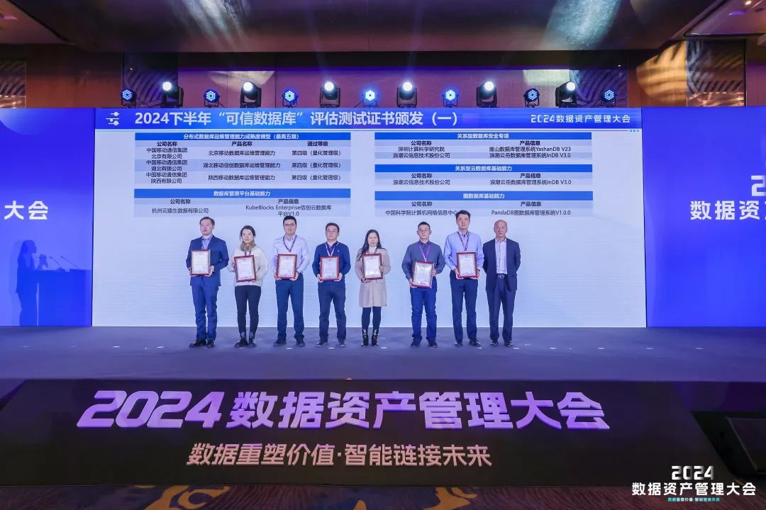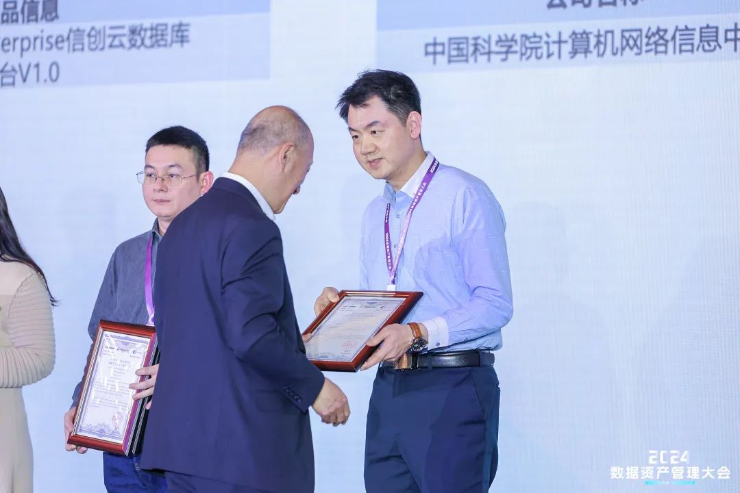 12月18日,由中国通信标准化协会主办的2024数据资产管理大会在北京盛大召开,大会聚焦数据资产化、数据治理、数据安全、数据流通、数智底座、数智应用等行业热点话题,探讨数据如何驱动产业升级和社会发展。中国科学院计算机网络信息中心科技处董乾受邀出席,并代表单位受领“可信数据库”产品检验证书。