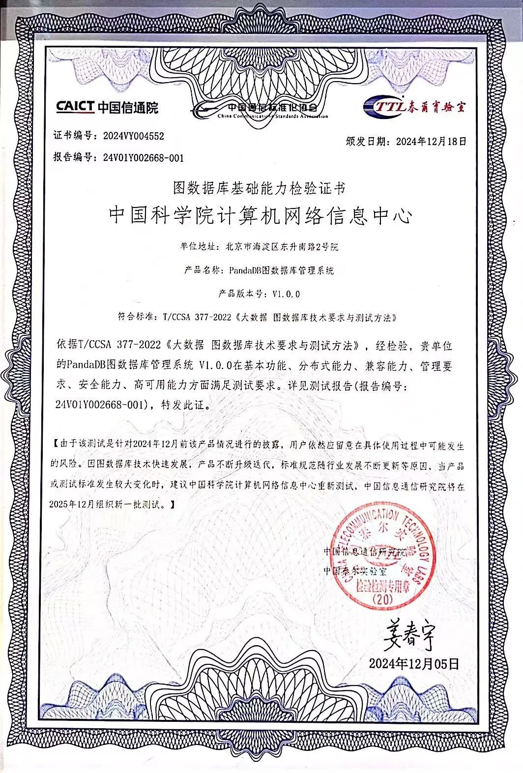 在本年度组织的测评中,我中心自主研发的PandaDB脱颖而出,在图数据库基础产品能力测试中斩获佳绩,在严格遵照工业团体标准下,产品在基本功能、分布式能力、兼容能力、管理要求、安全能力、高可用能力等方面全面满足测试要求,充分展现了其在信创环境下的出色稳定性与可控性。