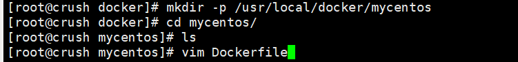 mkdir -p /usr/local/docker/mycentos # 自己创建存放的位置vim Dockerfile