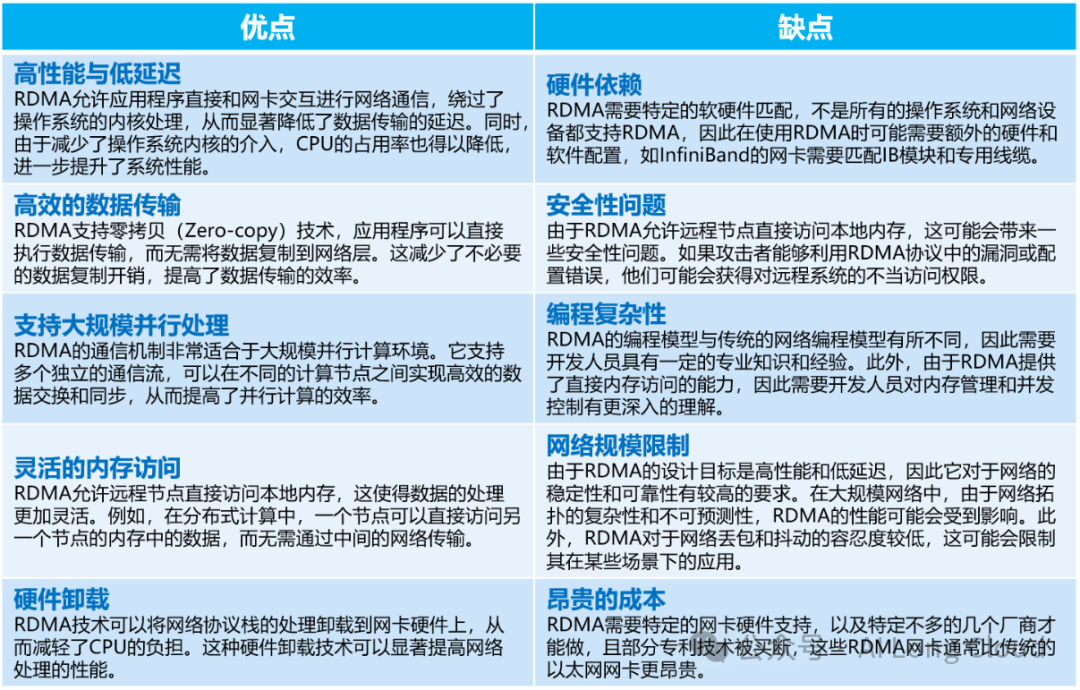 计算机的CPU:除了在建立连接、注册调用、控制管理等之外,在整个RDMA数据传输过程中并不提供服务,因此没有给系统带来任何的“负载”,相反还能释放出较多空闲时间,可以处理很多额外的CPU计算工作。