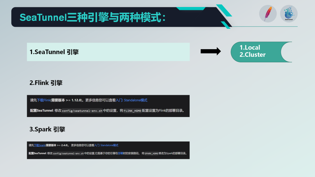 Apache SeaTunnel 提供了多种引擎模式,满足不同场景的数据同步需求。