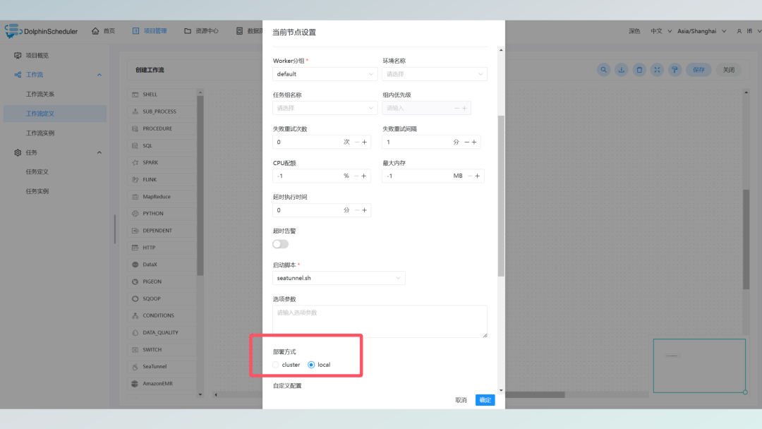 根据任务的引擎类型(如Flink、Spark或Zeta)选择相应的启动脚本。 支持设置任务的运行模式(Local或Cluster),以满足不同的任务规模和资源分配策略。