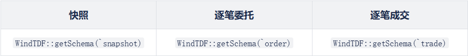 接着,我们分别调用以下函数获取快照、逐笔委托、逐笔成交三种表结构: