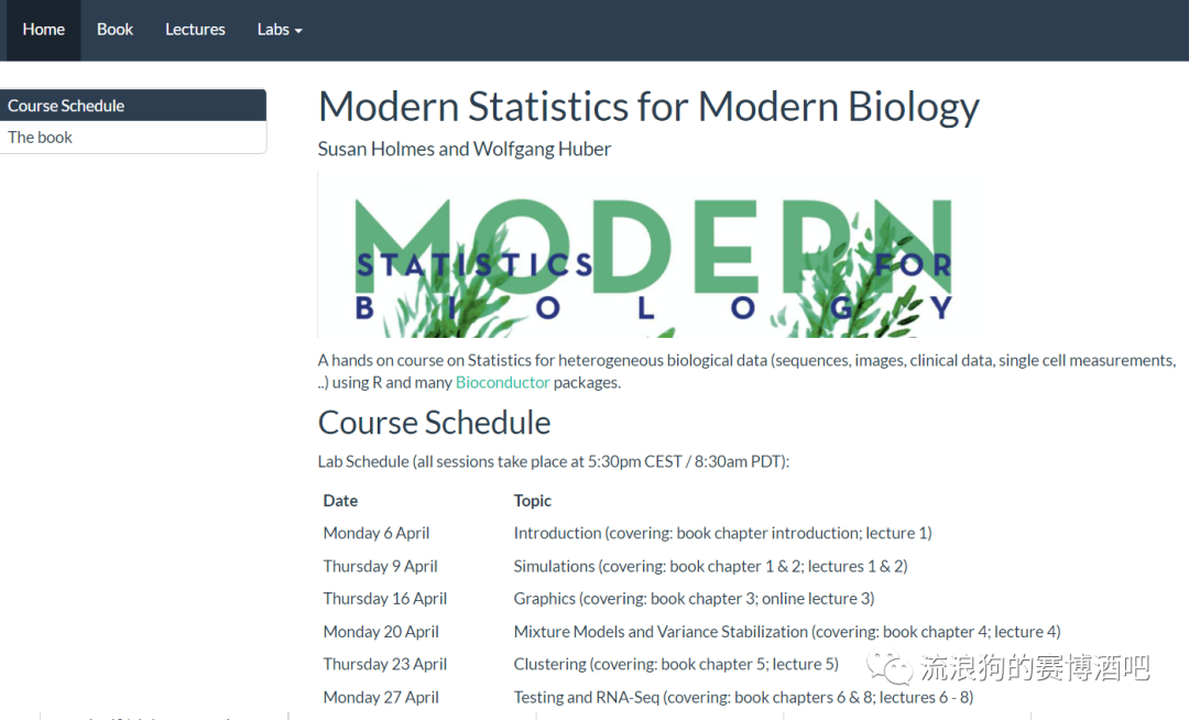 在Rosalind网页上乱点的时候发现在course页面里有很多正在讲授生信相关课程的教授名单,随便点进去一个收获了巨大惊喜!https://www.huber.embl.de/msmb/course_spring_2020/index.html
