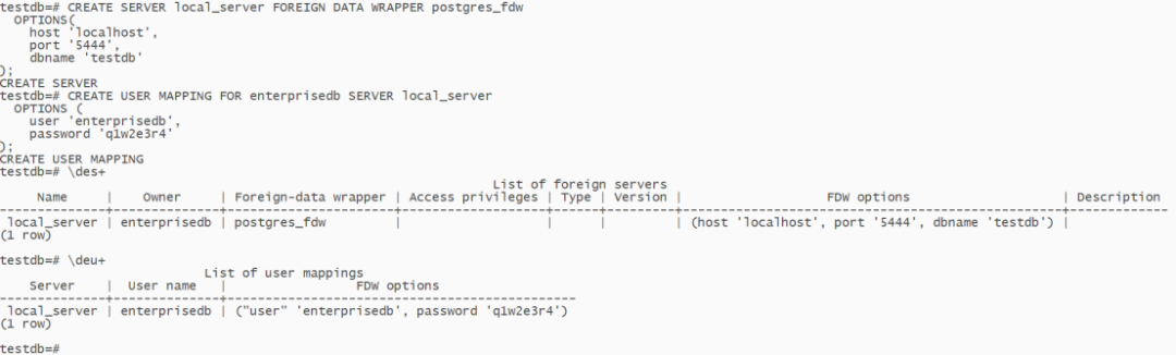 用户映射定义了外部服务器的连接和身份验证信息,您必须在克隆发生的本地服务器的数据库中创建此外部服务器和用户映射。