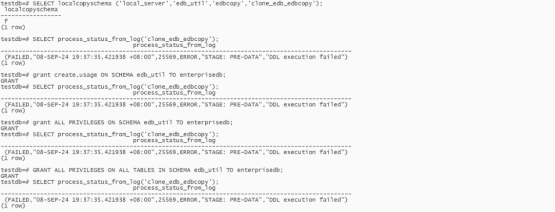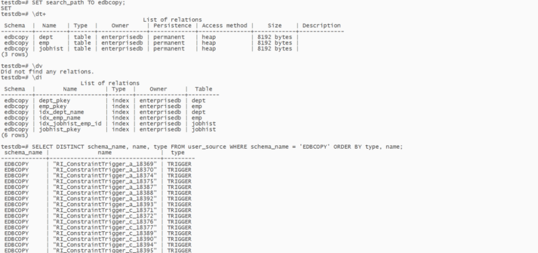 2.有两个函数可以与EDB克隆架构一起使用,以执行架构及其数据库对象的本地副本